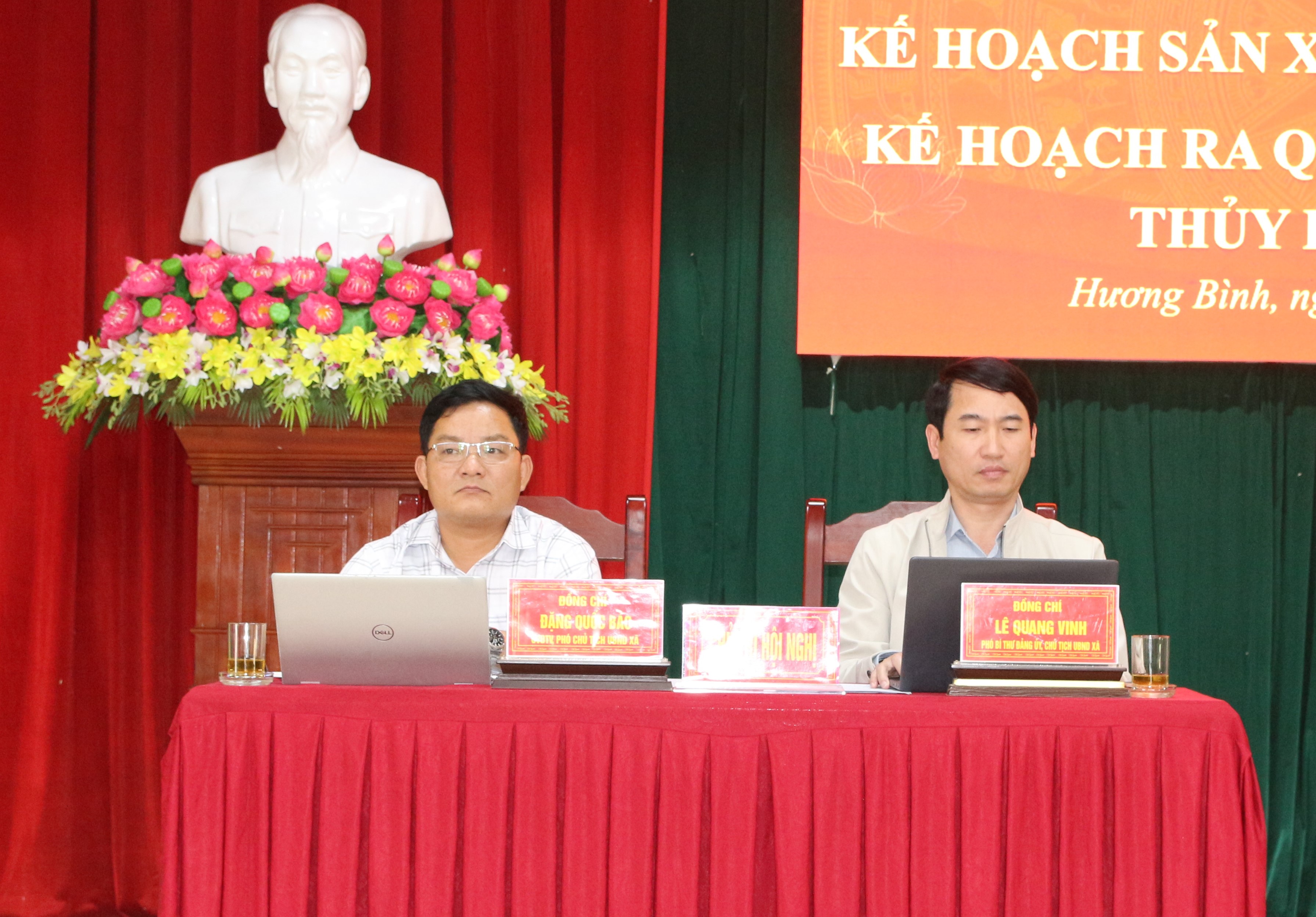 Đồng chí Lê Quang Vinh - Phó Bí thư Đảng ủy, Chủ tịch UBND và Đặng Quốc Bảo - Phó Chủ tịch UBND xã Chủ trì hội nghị