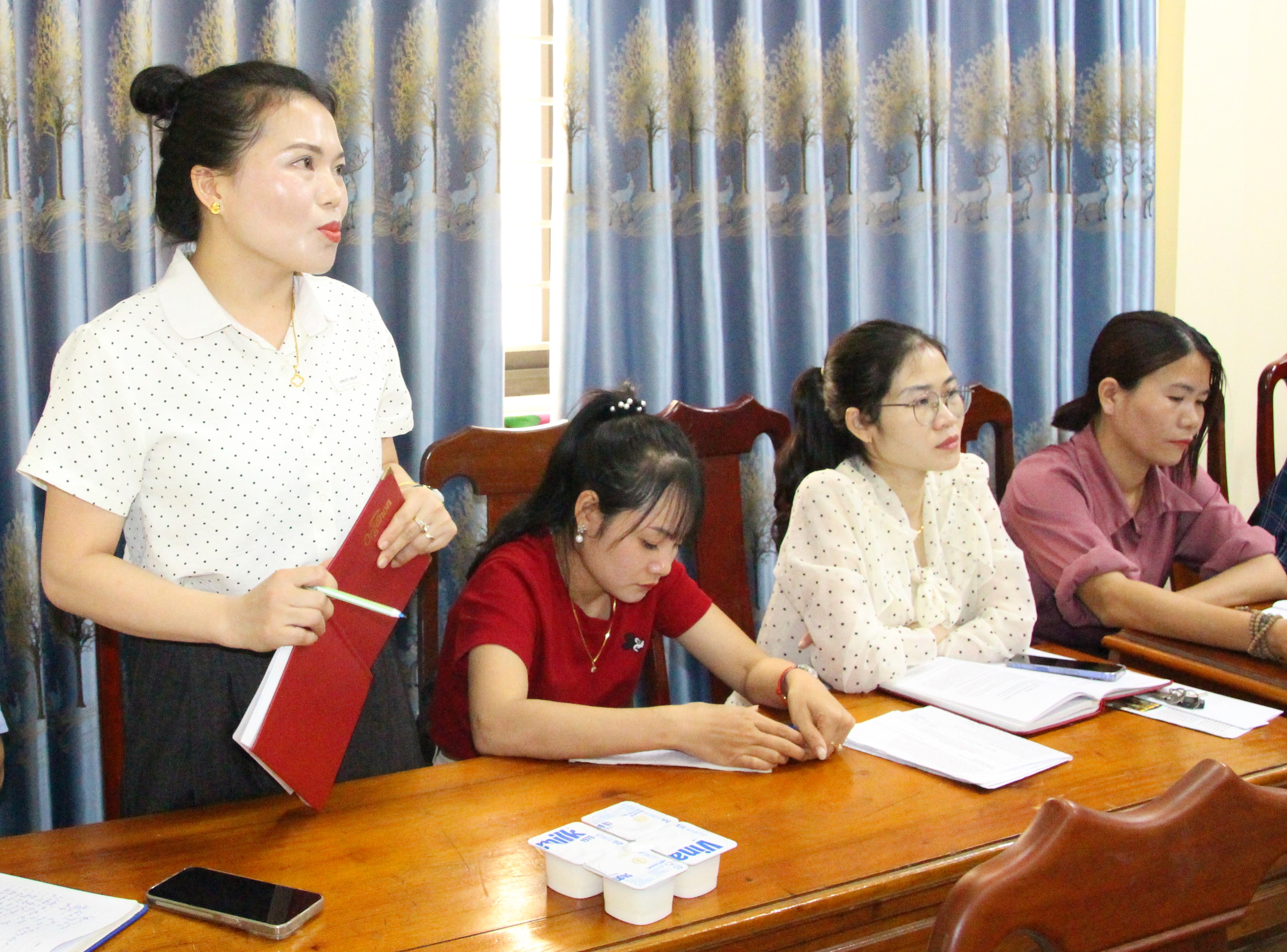 Đồng chí Thái Hồng Sang - Ủy viên BTV Đảng ủy, Phó Chủ tịch UBND xã phát biểu tại buổi làm việc.