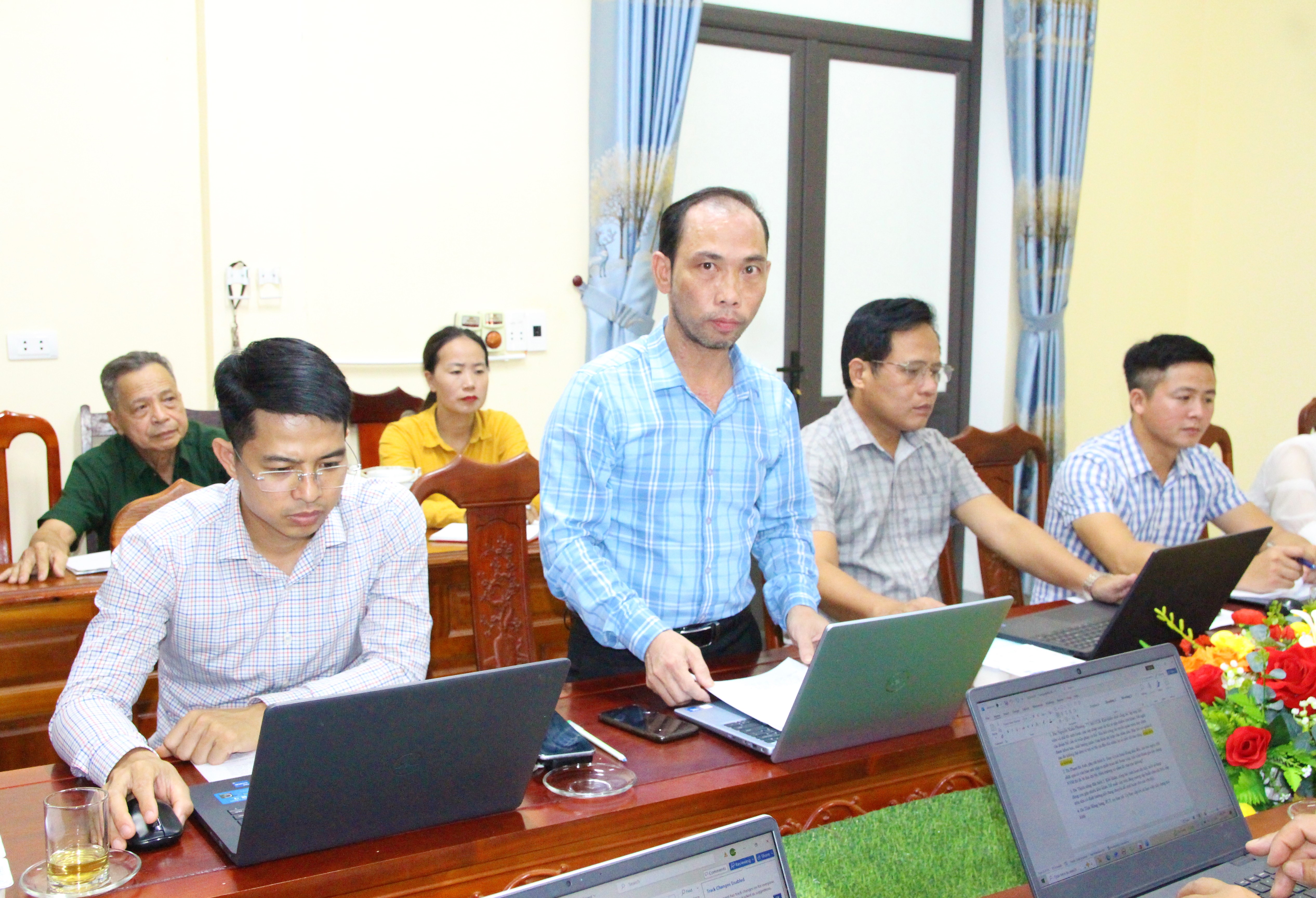 Đồng chí Nguyễn Thanh Tuấn - Bí thư Đảng ủy, Chủ tịch HĐND xã chủ trì buổi làm việc.