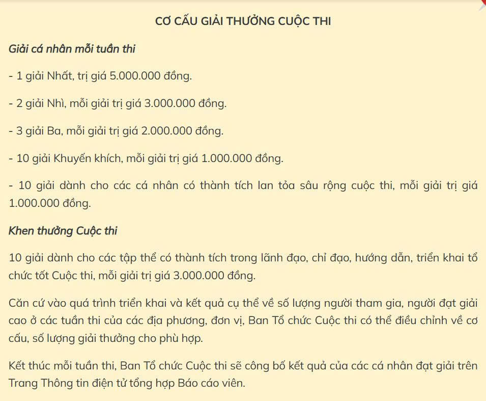 Cuộc thi dự kiến diễn ra từ ngày 27/2 đến ngày 15/3/2026. Phát động Cuộc thi trong chương trình Hội nghị Báo cáo viên Trung ương toàn quốc tháng 3/2026 với 2 tuần thi: