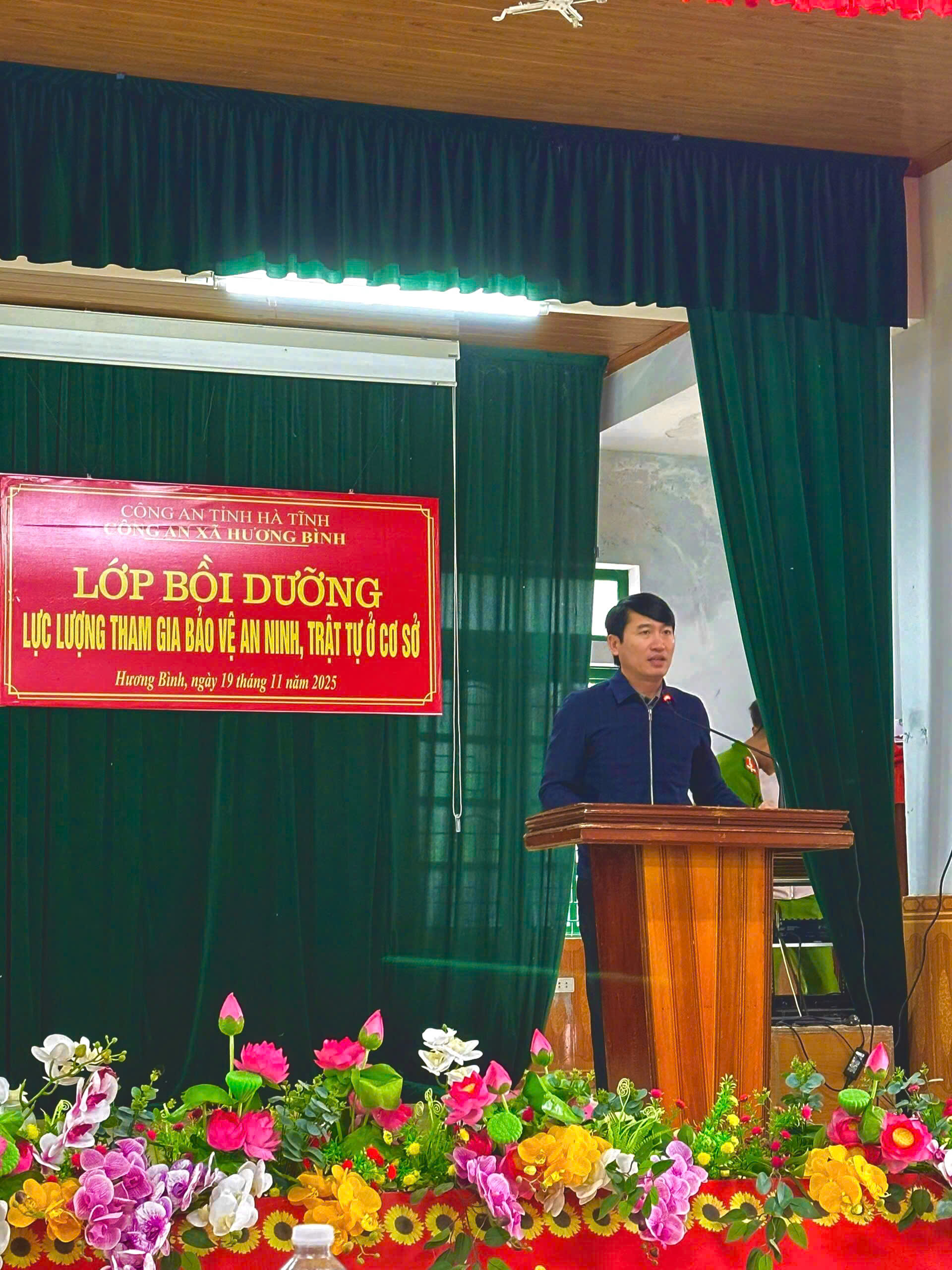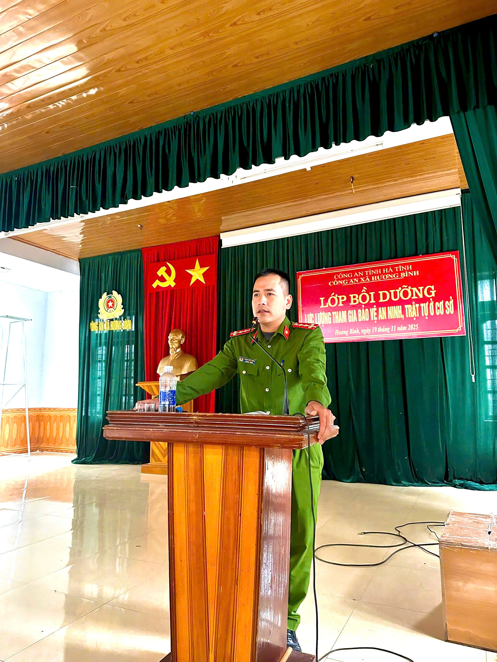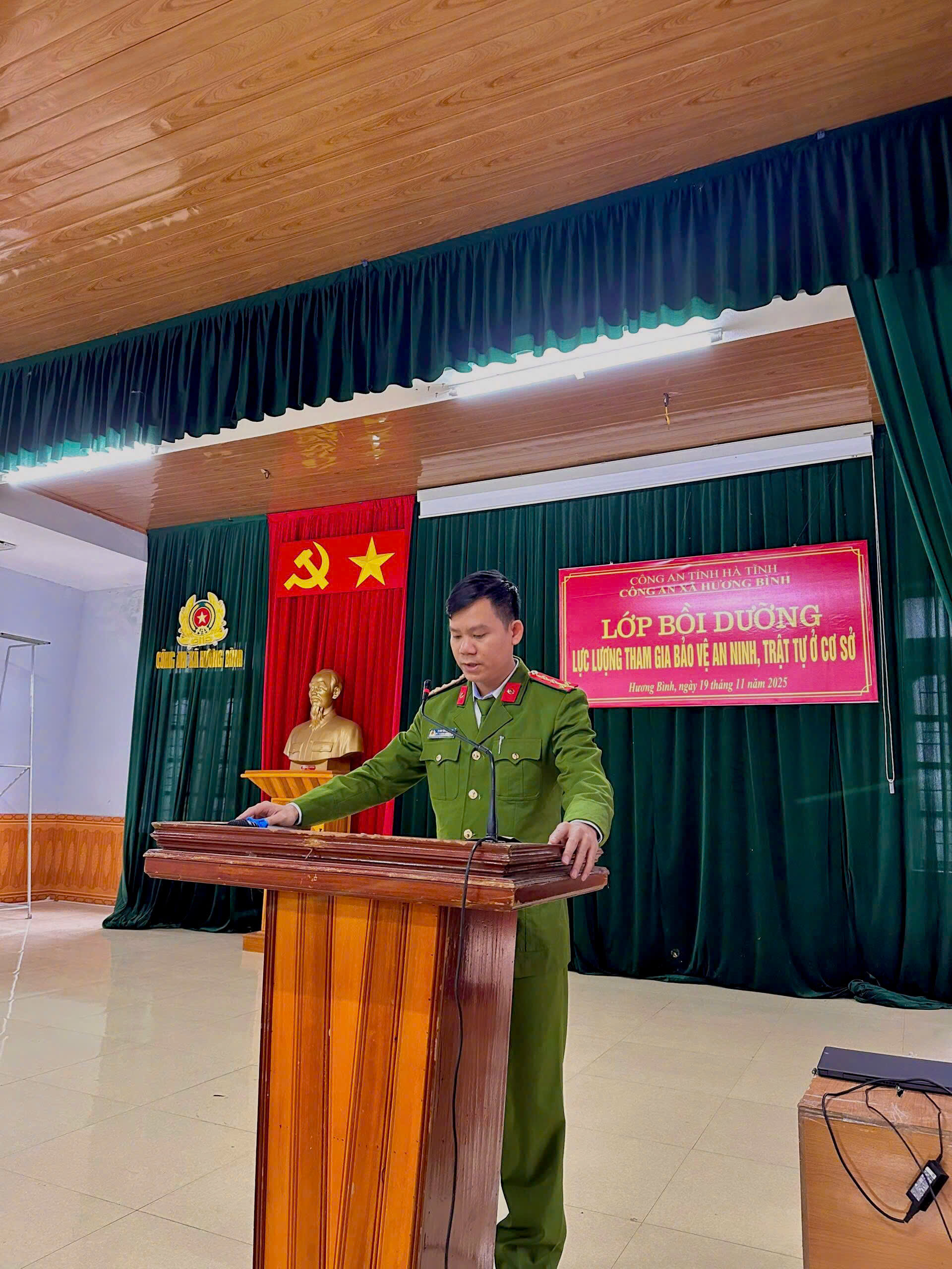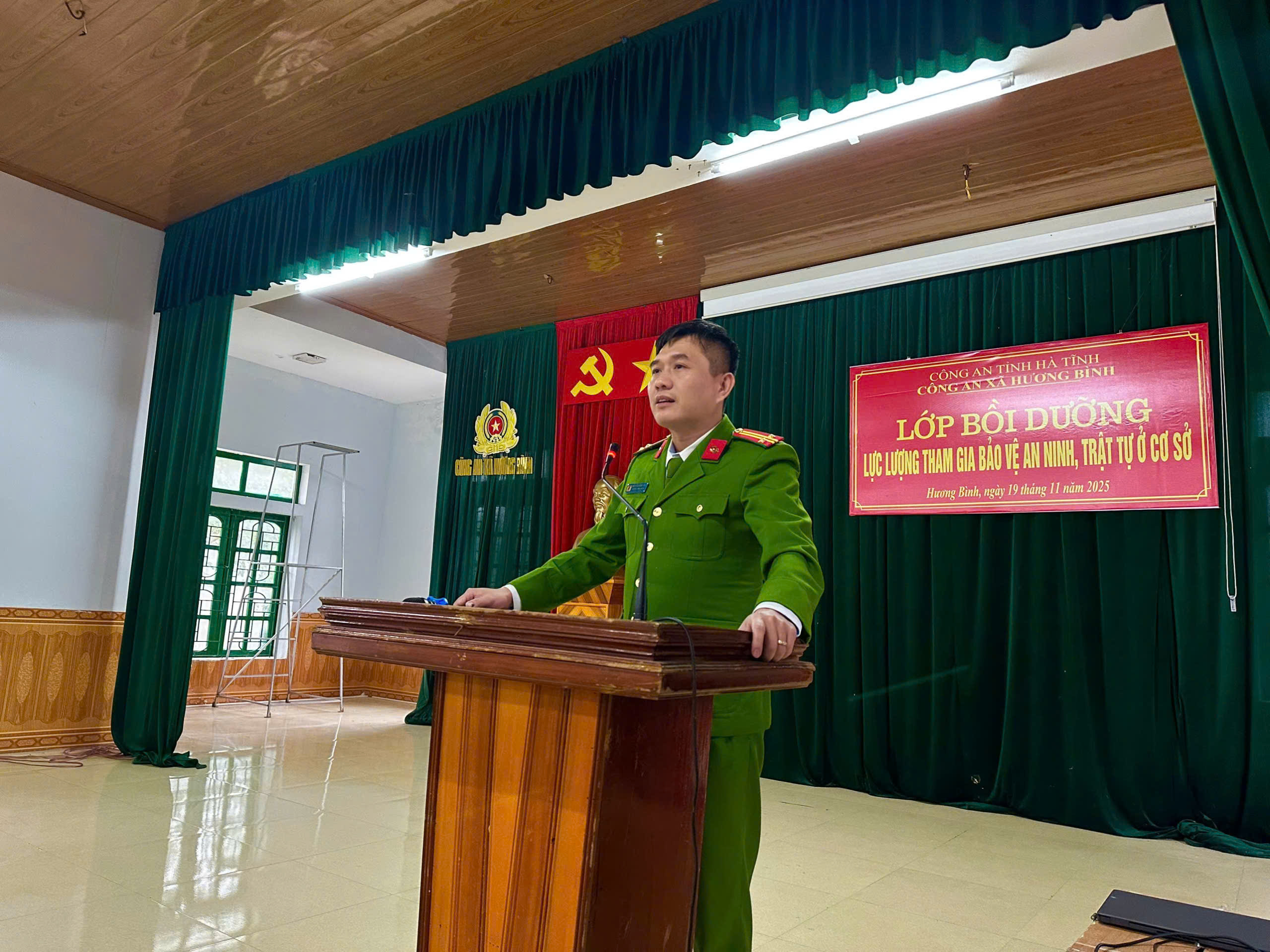 Sáng ngày 19/11/2025, Công an xã Hương Bình phối hợp với Phòng Tổ chức cán bộ – Công an tỉnh Hà Tĩnh tổ chức lớp bồi dưỡng nghiệp vụ cho lực lượng tham gia bảo vệ an ninh, trật tự ở cơ sở trên địa bàn xã.
