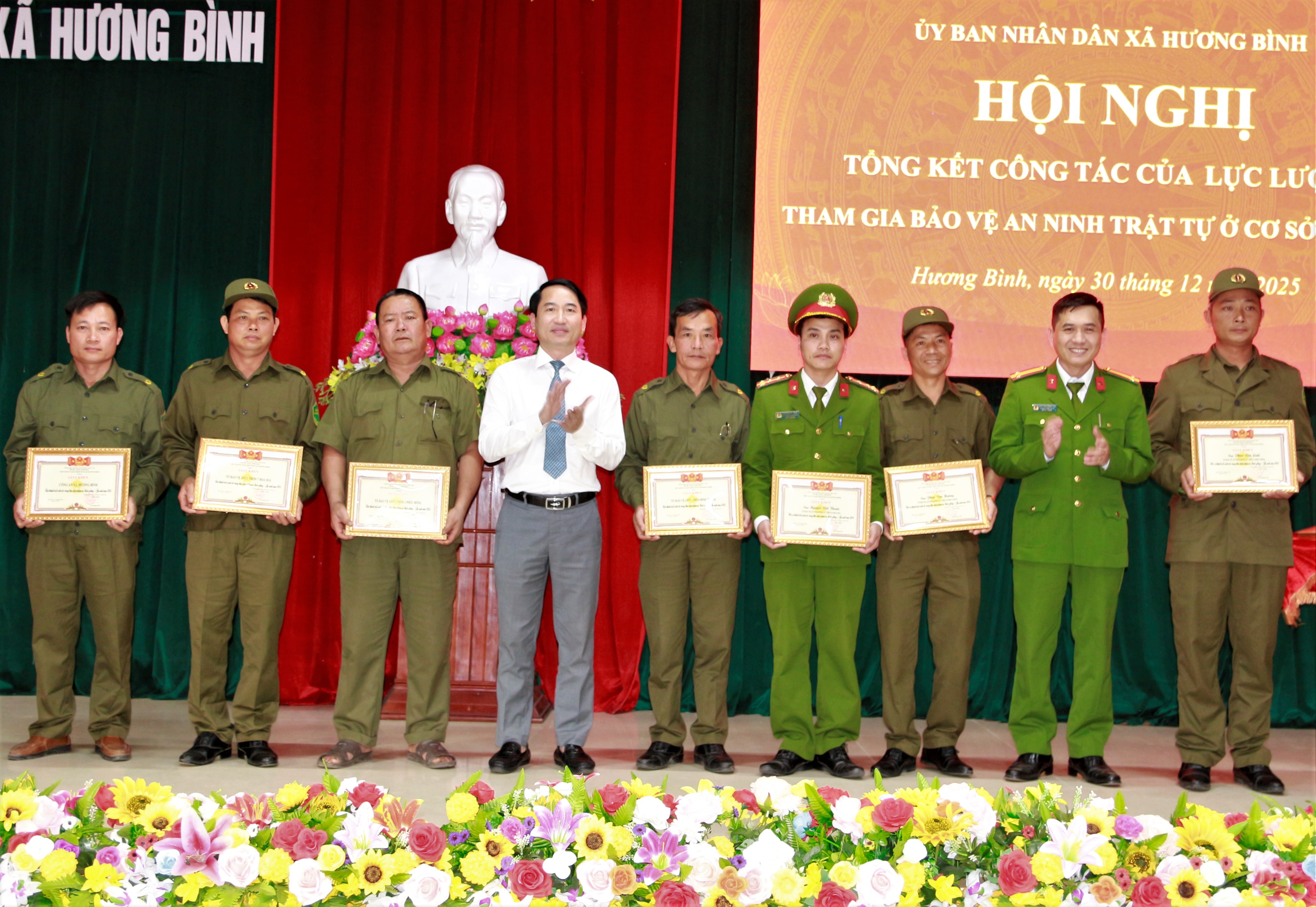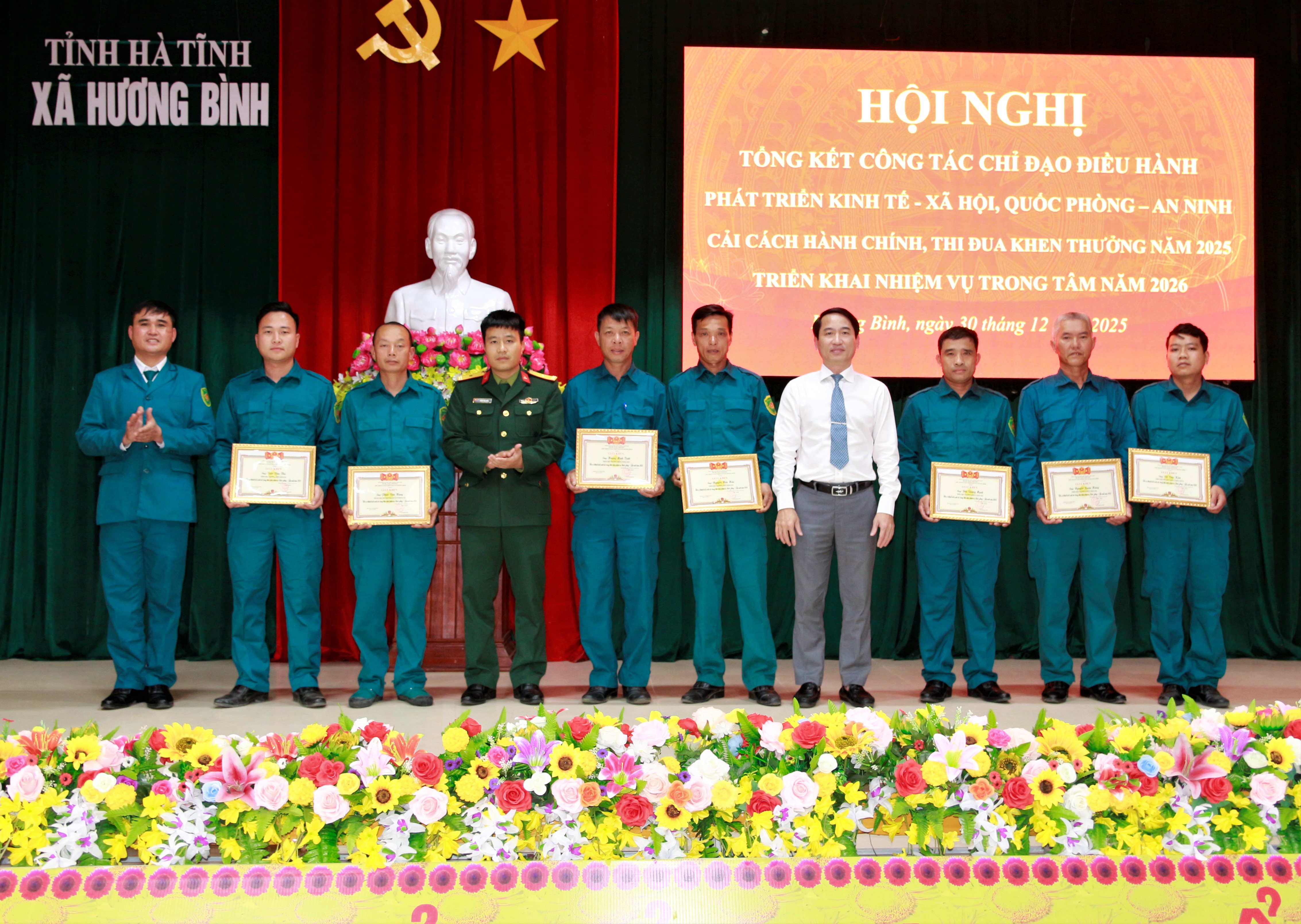 Nhân dịp này, xã Hương Bình cũng tặng giấy khen cho 4 tập thể, 27 cá nhân có thành tích xuất sắc trong thực hiện nhiệm vụ năm 2025 và công nhận các danh hiệu thi đua cho 9 tập thể, 76 cá nhân.