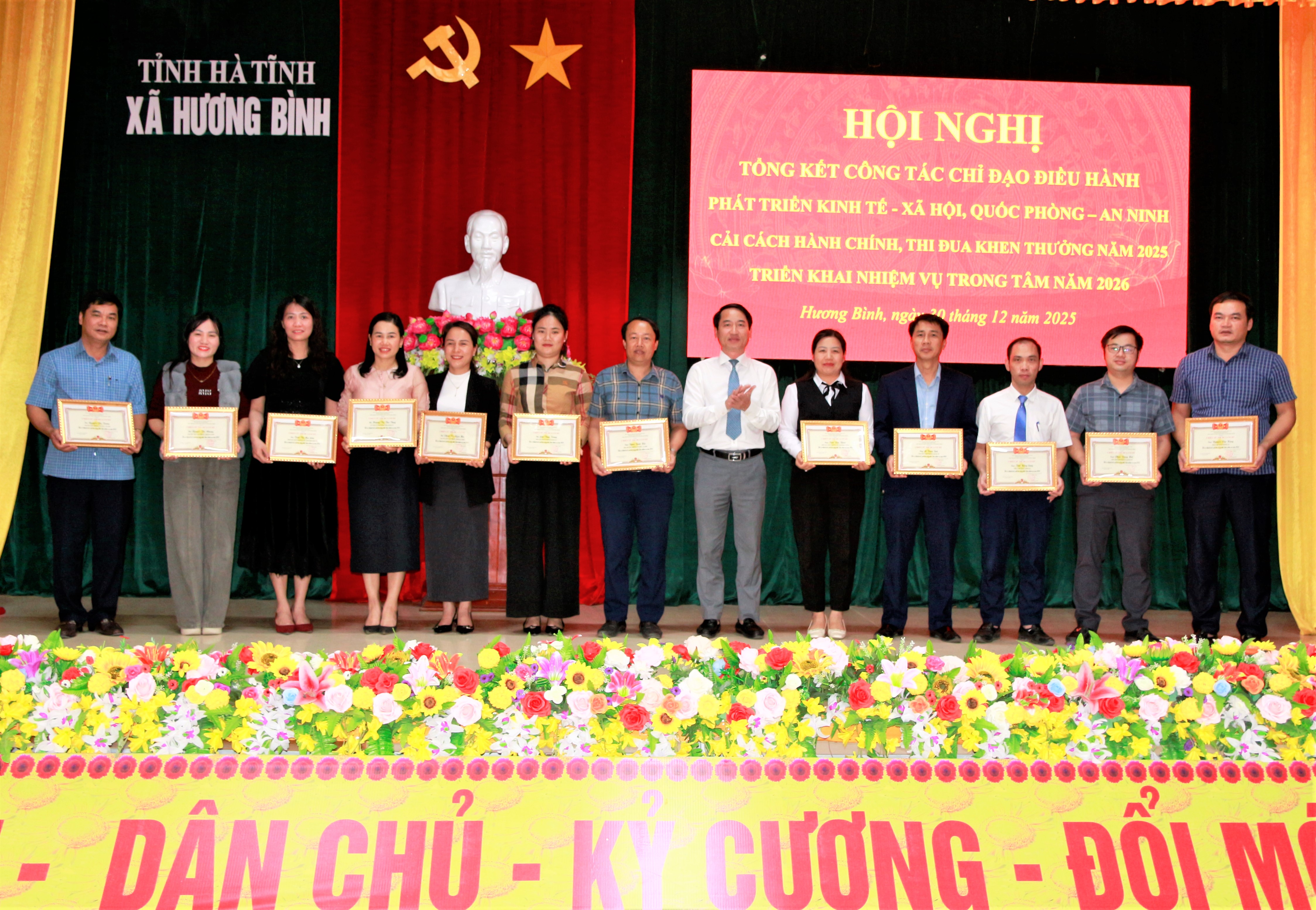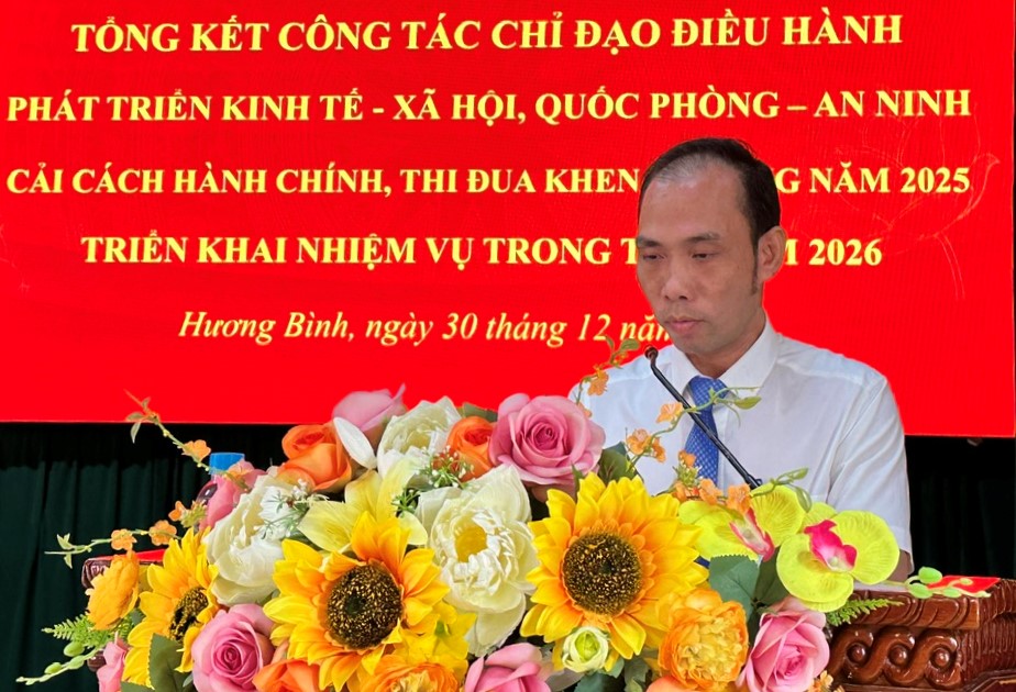 Chiều ngày 30/12/2025, xã Hương Bình tổ chức Hội nghị tổng kết công tác chỉ đạo điều hành phát triển Kinh tế - Xã hội, Quốc phòng – An ninh, cải cách hành chính và thi đua khen thưởng năm 2025.