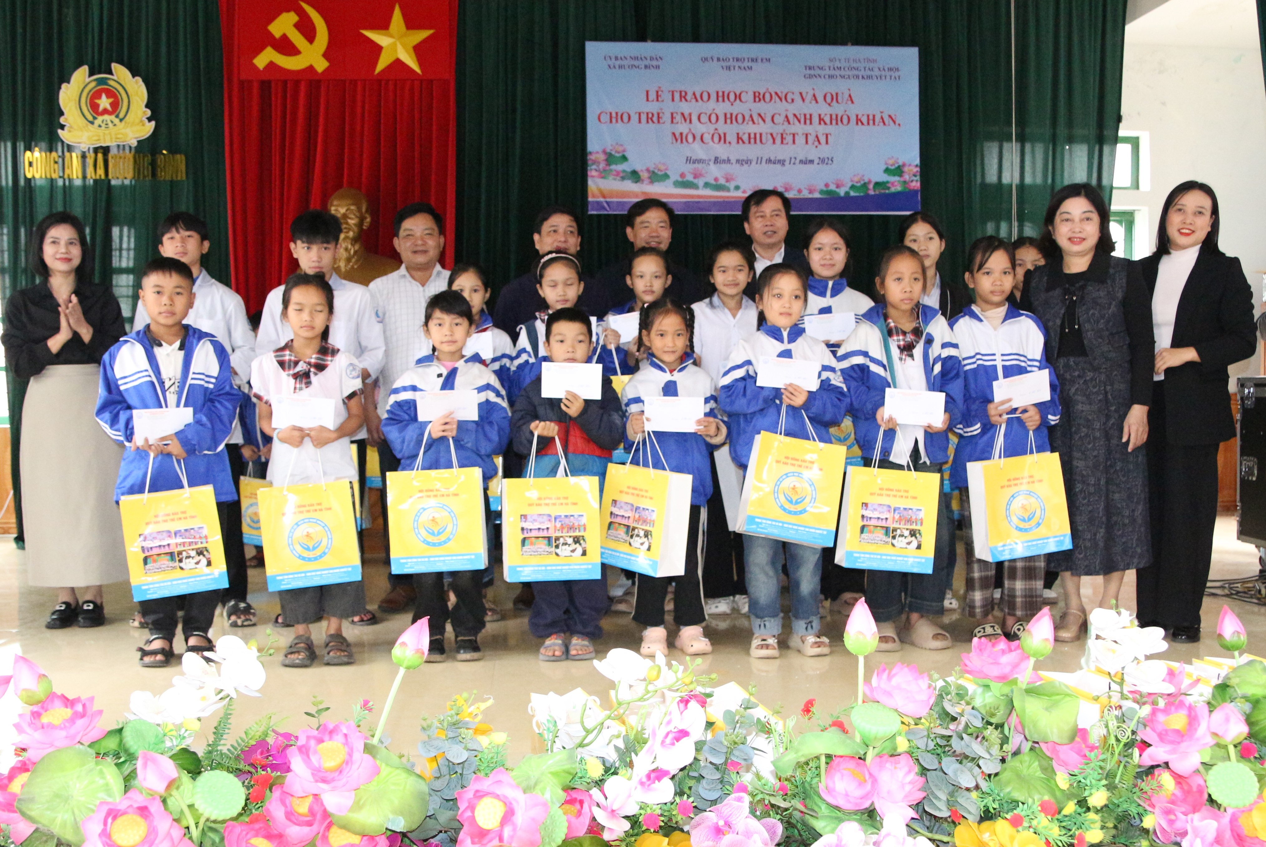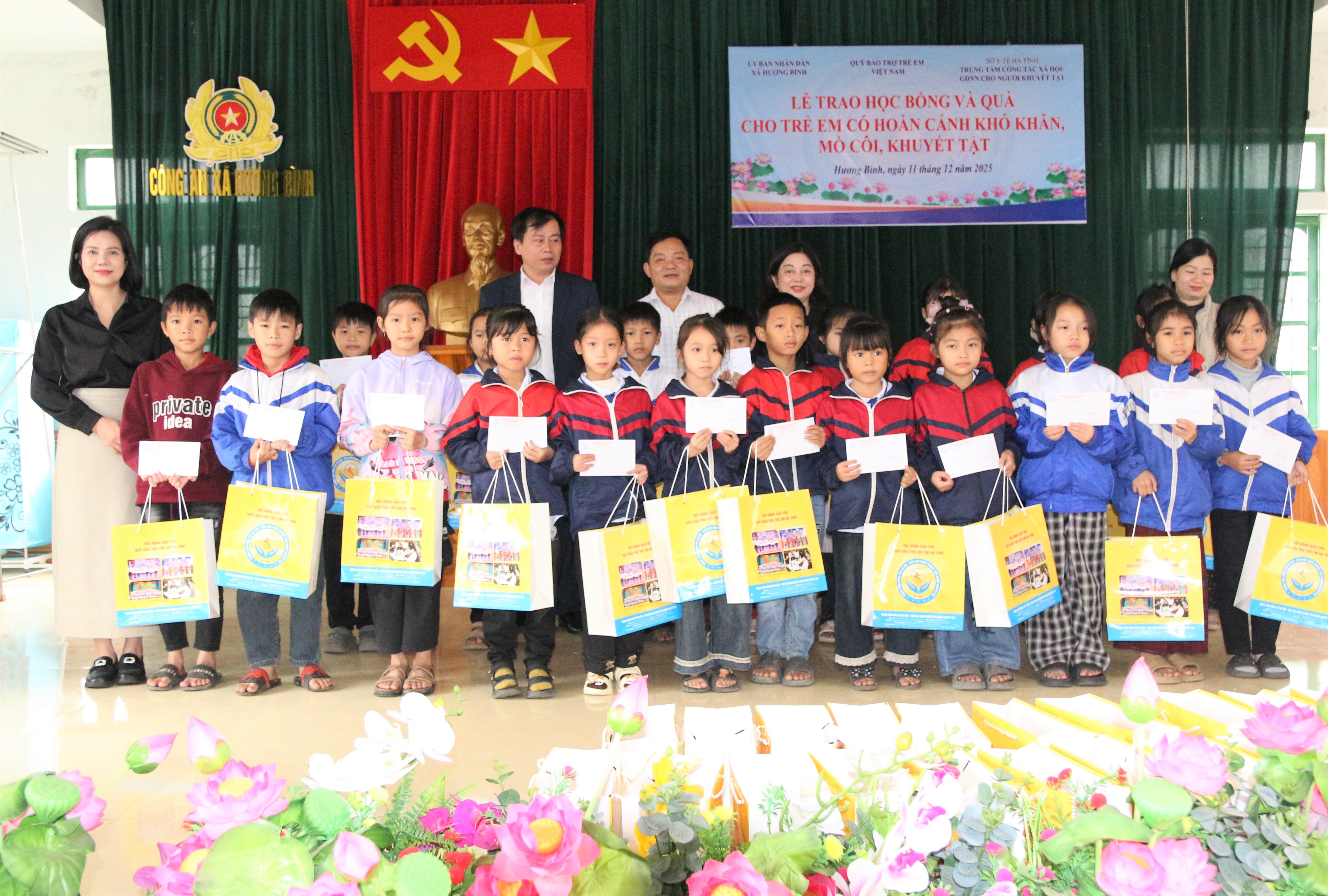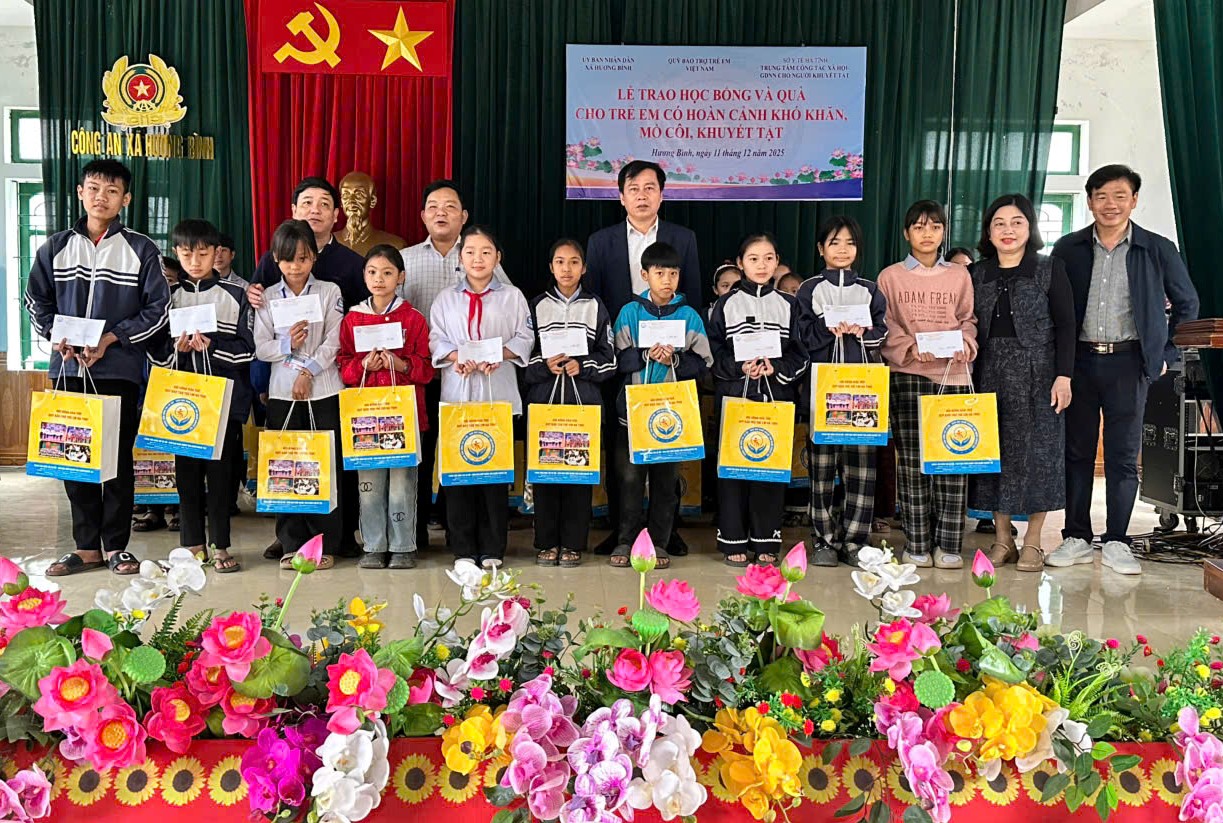 Sáng ngày 11/12/2025, Trung tâm Công tác xã hội - Giáo dục nghề nghiệp cho người khuyết tật tỉnh Hà Tĩnh phối hợp xã Hương Bình tổ chức trao học bổng cho các em có hoàn cảnh khó khăn vươn lên trong học tập.