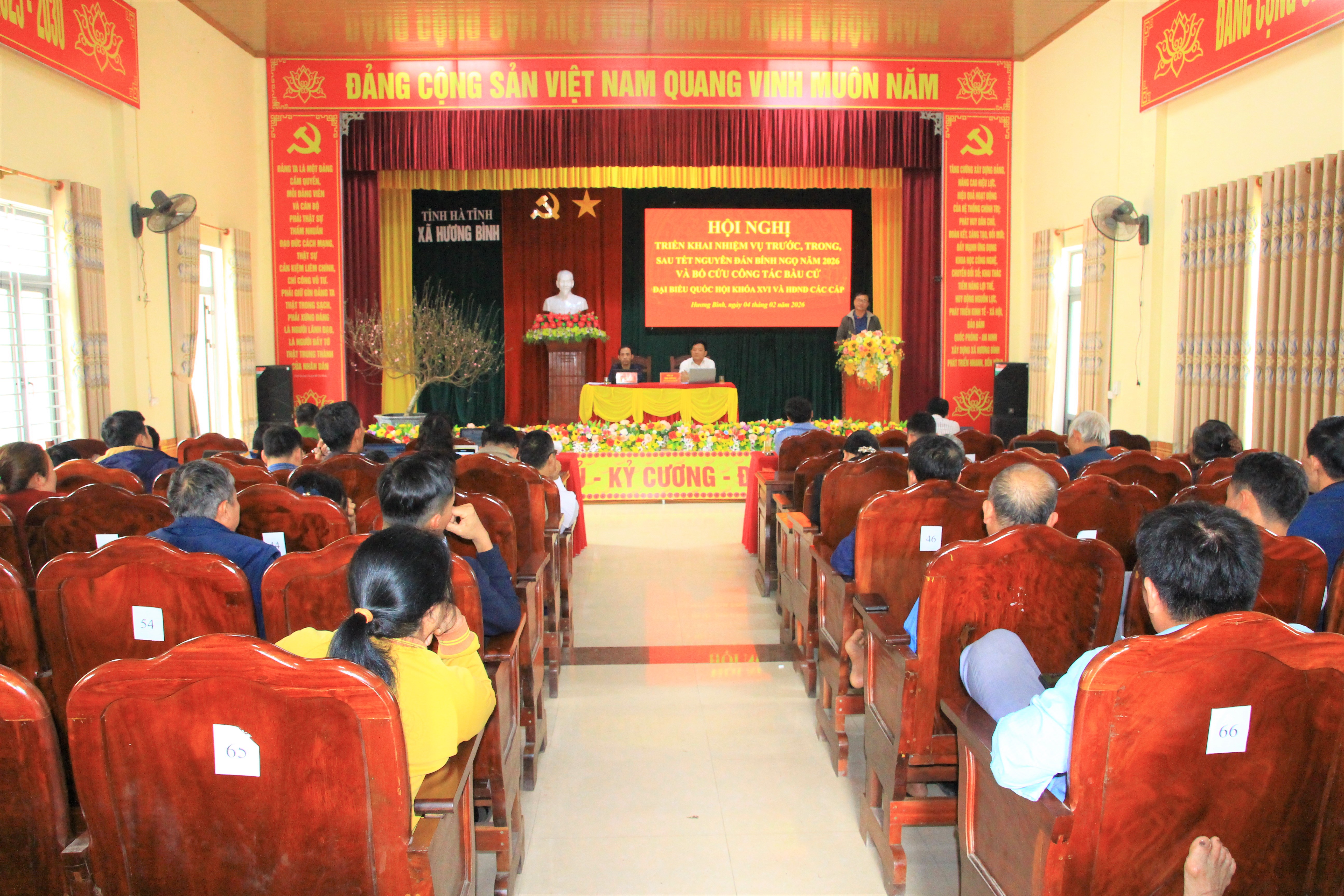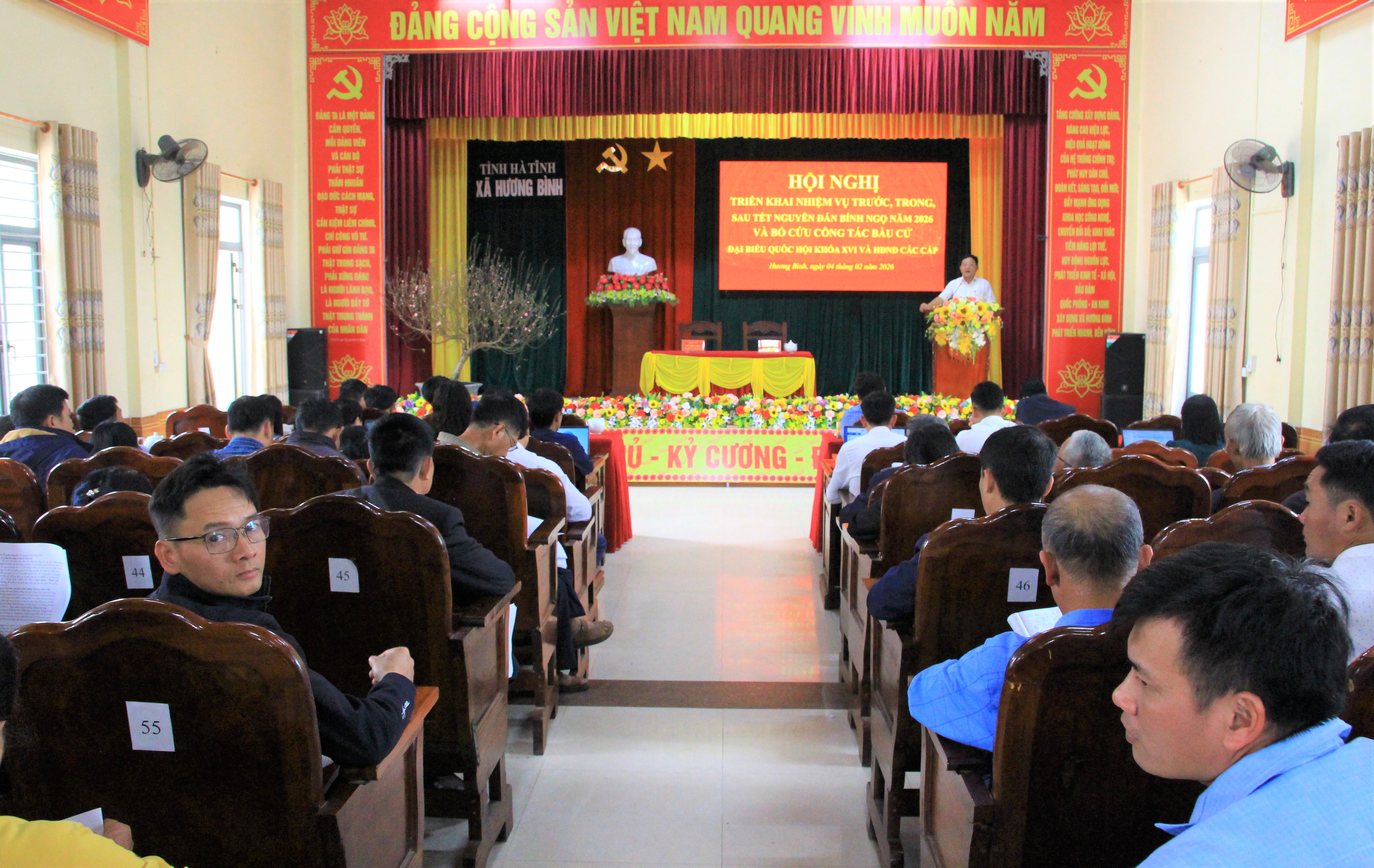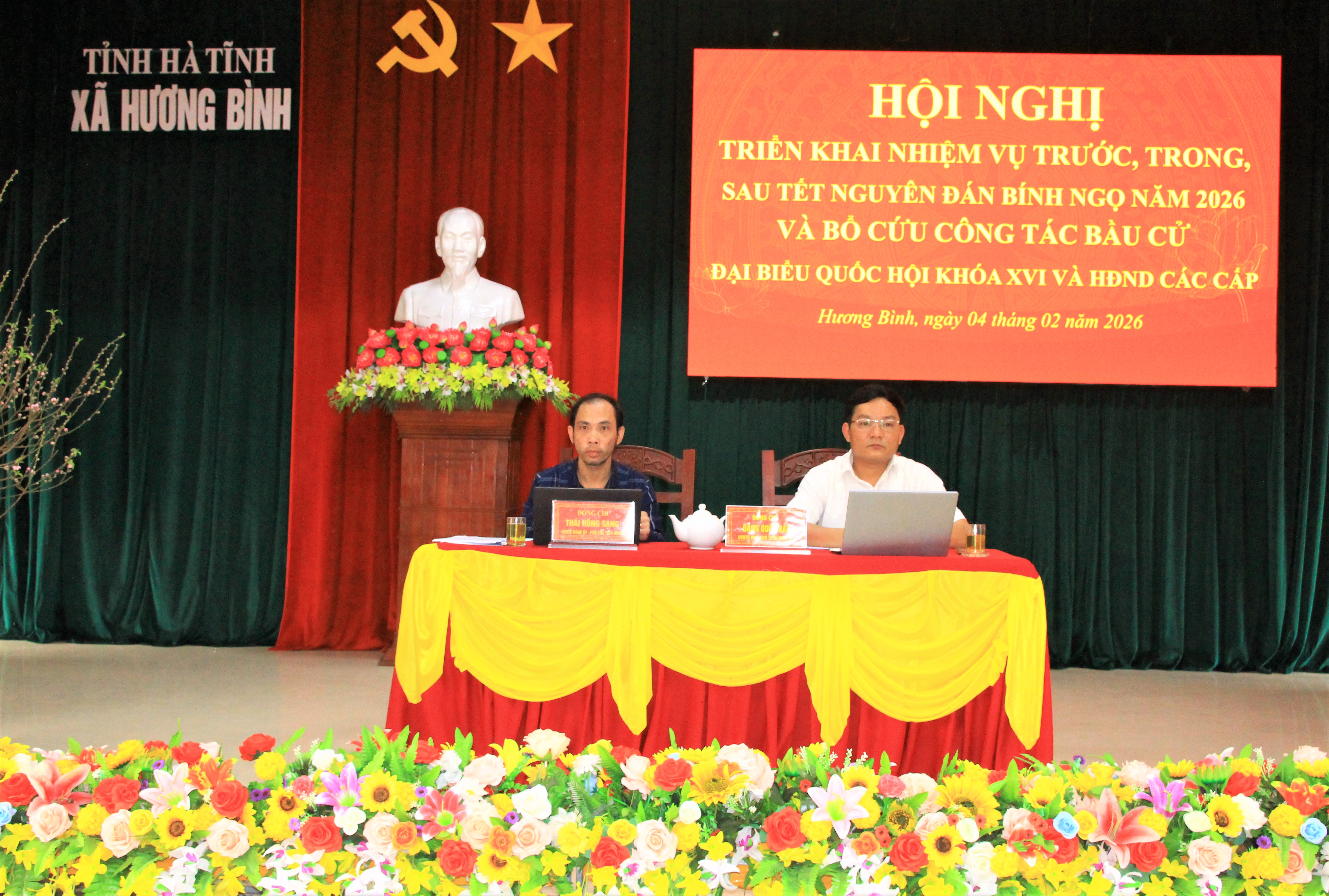 Chiều ngày 4/2/2026, xã Hương Bình (Hà Tĩnh) tổ chức Hội nghị triển khai nhiệm vụ trước, trong và sau dịp Tết Nguyên đán Bính Ngọ 2026 và bổ cứu công tác bầu cử Đại biểu Quốc hội khóa XVI và HĐND các cấp, nhiệm kỳ 2026 – 2031.