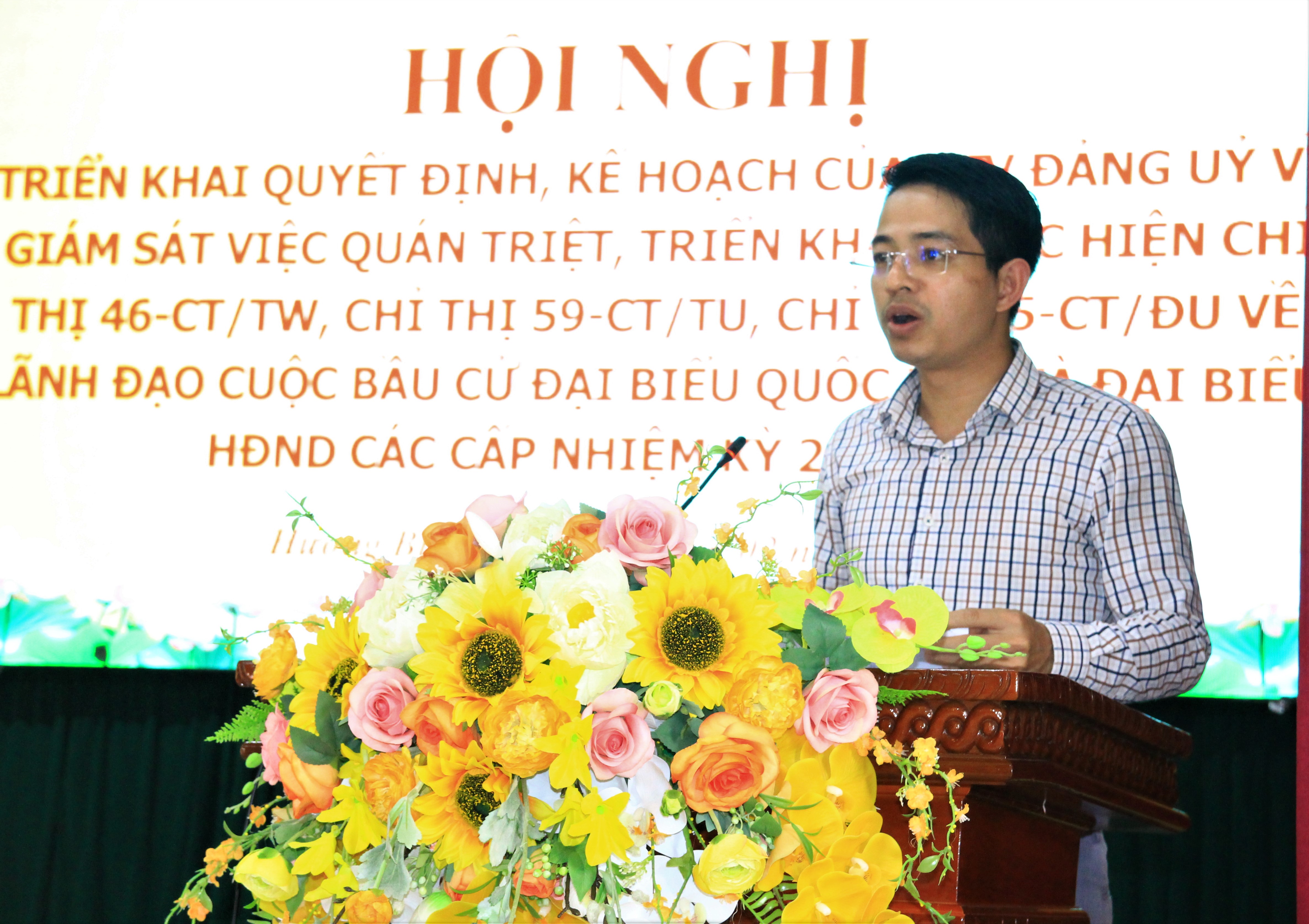 Tại hội nghị, đồng chí Phan Thanh Hải – Chủ nhiệm Ủy ban Kiểm tra Đảng ủy triển khai quán triệt về công tác kiểm tra giám sát, triển khai thực hiện quyết định, kế hoạch của BTV Đảng ủy về công tác giám sát việc quán triệt, triển khai thực hiện chỉ thị 46-C/TW, Chỉ thị 59-CT/TU, Chỉ thị 05-CT/ĐU về lãnh đạo cuộc bầu cử Đại biểu Quốc hội và Đại biểu HĐND các cấp, nhiệm kỳ 2026 – 2031.