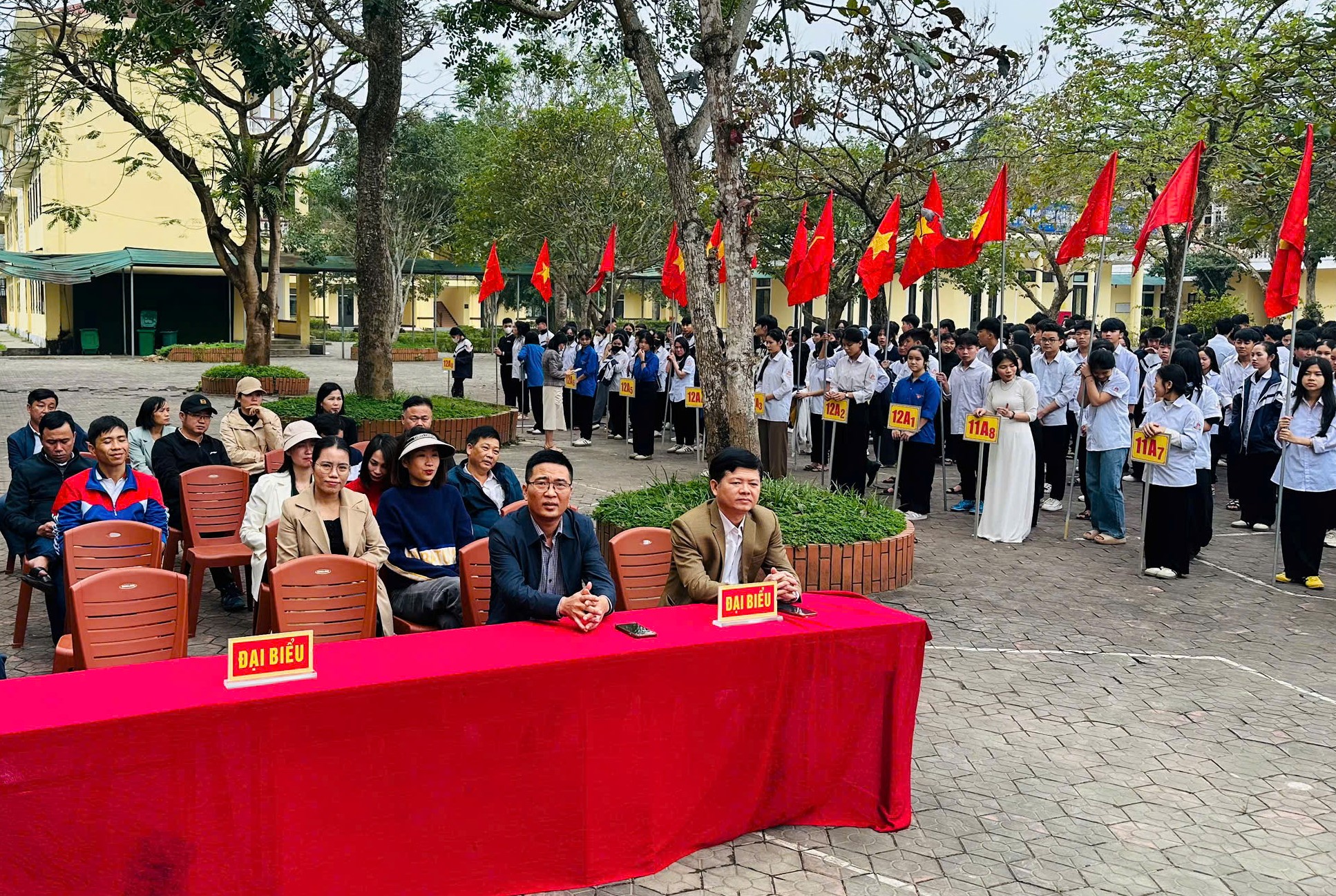 Đại biểu dự lễ khai mạc Hội khỏe Phù đồng tại trường THPT Hàm Nghi.