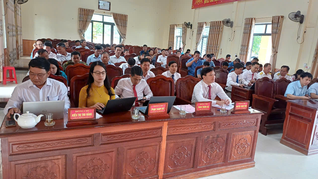 Đồng chí Lê Quang Vinh Chủ tịch UBND xã, Đồng chí Thái Hồng Sang PCT UBND xã cùng chủ trì hội nghị.