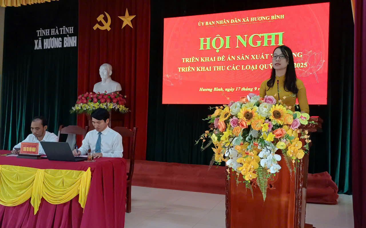Báo cáo tại hội nghị, lãnh đạo Phòng Kinh tế Đặng Thị Quỳnh Anh báo cáo mục tiêu phấn đấu tổng diện tích gieo trồng Vụ Đông năm 2025 đạt 445ha. Trong đó: Cây Ngô: 365 ha; trong đó: Ngô sinh khối, Ngô nếp lấy bắp: 80 ha, năng suất 30 tấn/ha, sản lượng 2.400 tấn; Ngô lấy hạt 285 ha, năng suất 50 tạ/ha, sản lượng 1.425 tấn; Cây khoai lang: 25 ha; năng suất 65 tạ/ha, sản lượng 163 tấn; Rau màu các loại: 56 ha, năng suất 56 tạ/ha, sản lượng 313,6 tấn; Cây ăn quả có múi: Trồng mới diện tích cam 1,5 ha, bưởi 2 ha.
