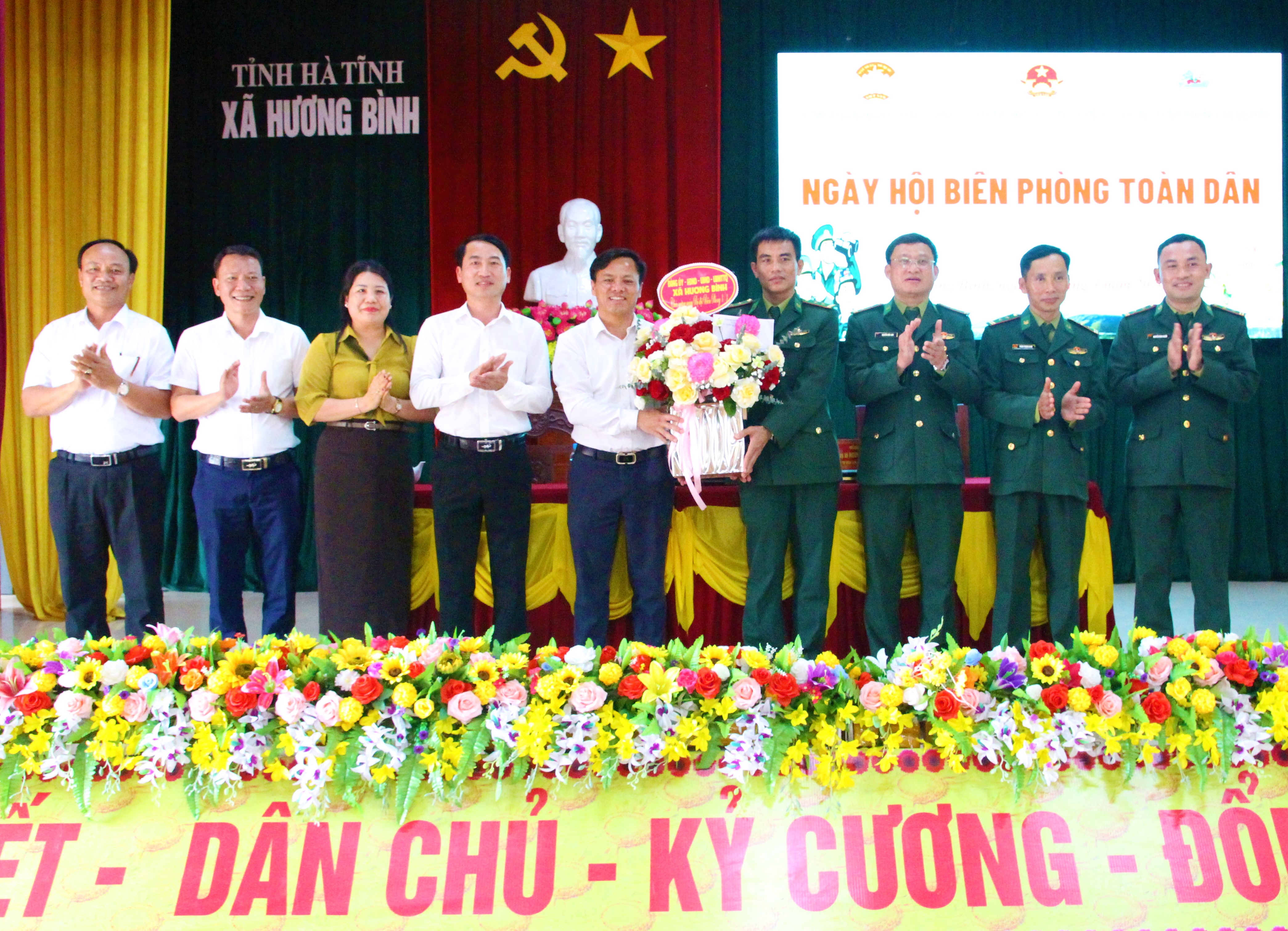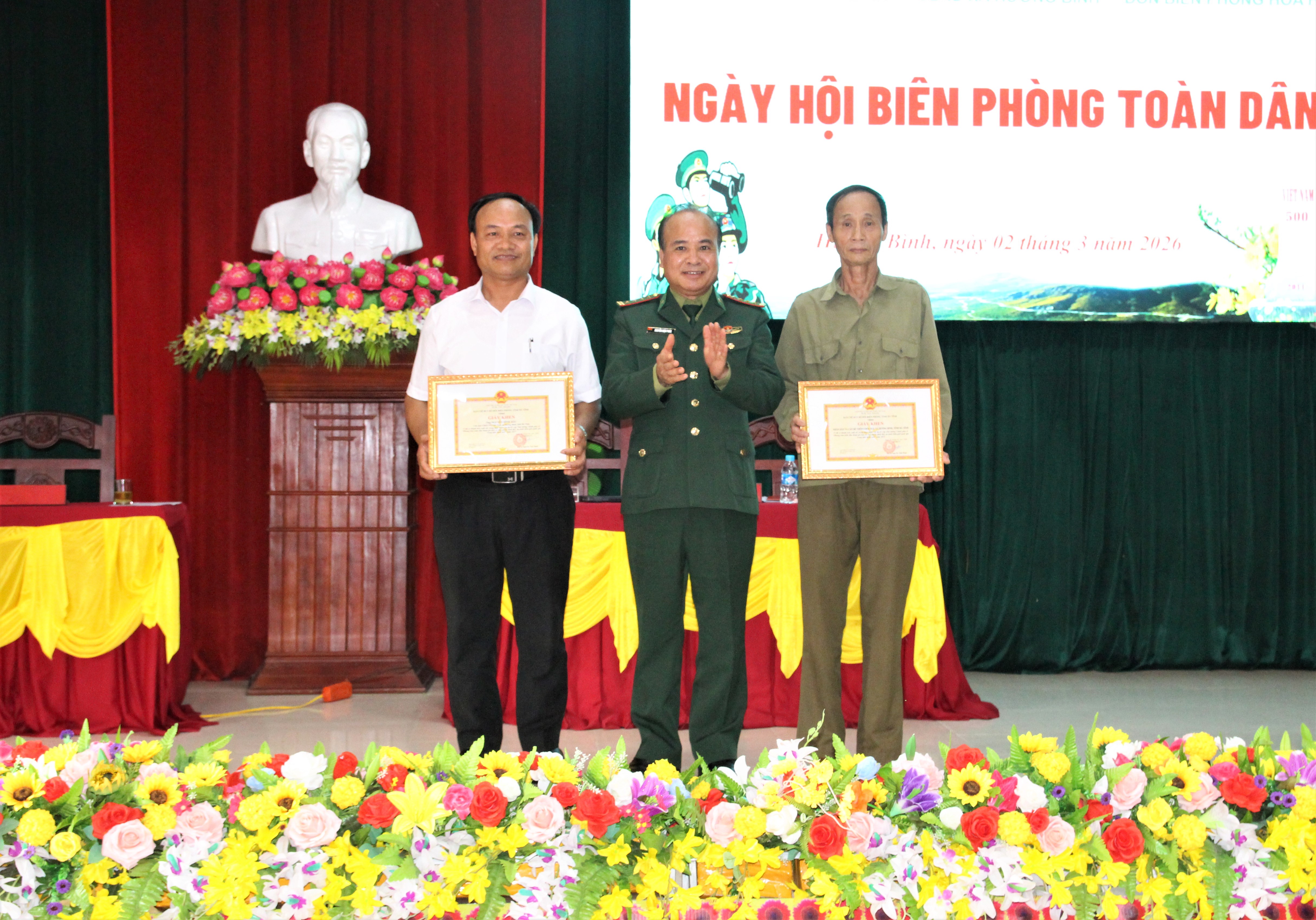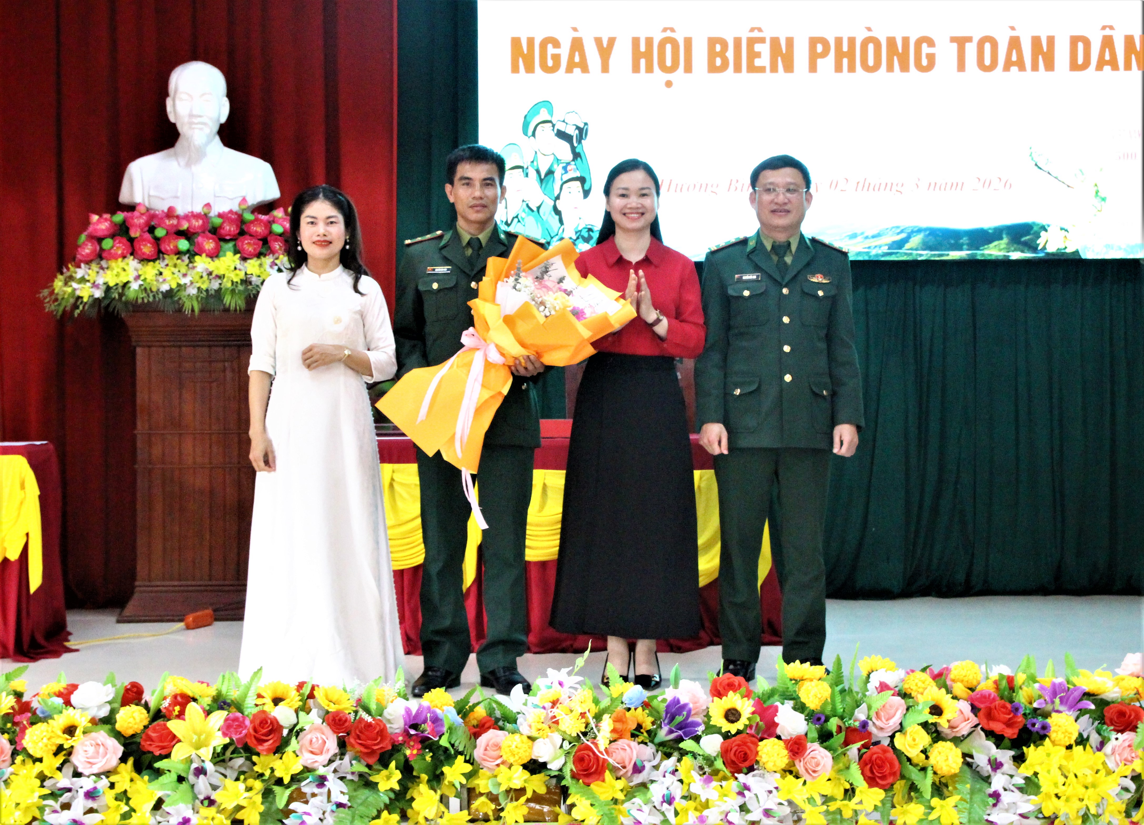 Tại ngày hội, Đảng ủy, HĐND, UBND, Ủy ban MTTQ Việt Nam xã Hương Bình và trường Mầm non Phúc Đồng tặng hoa chúc mừng Đồn Biên phòng Hòa Hải.
