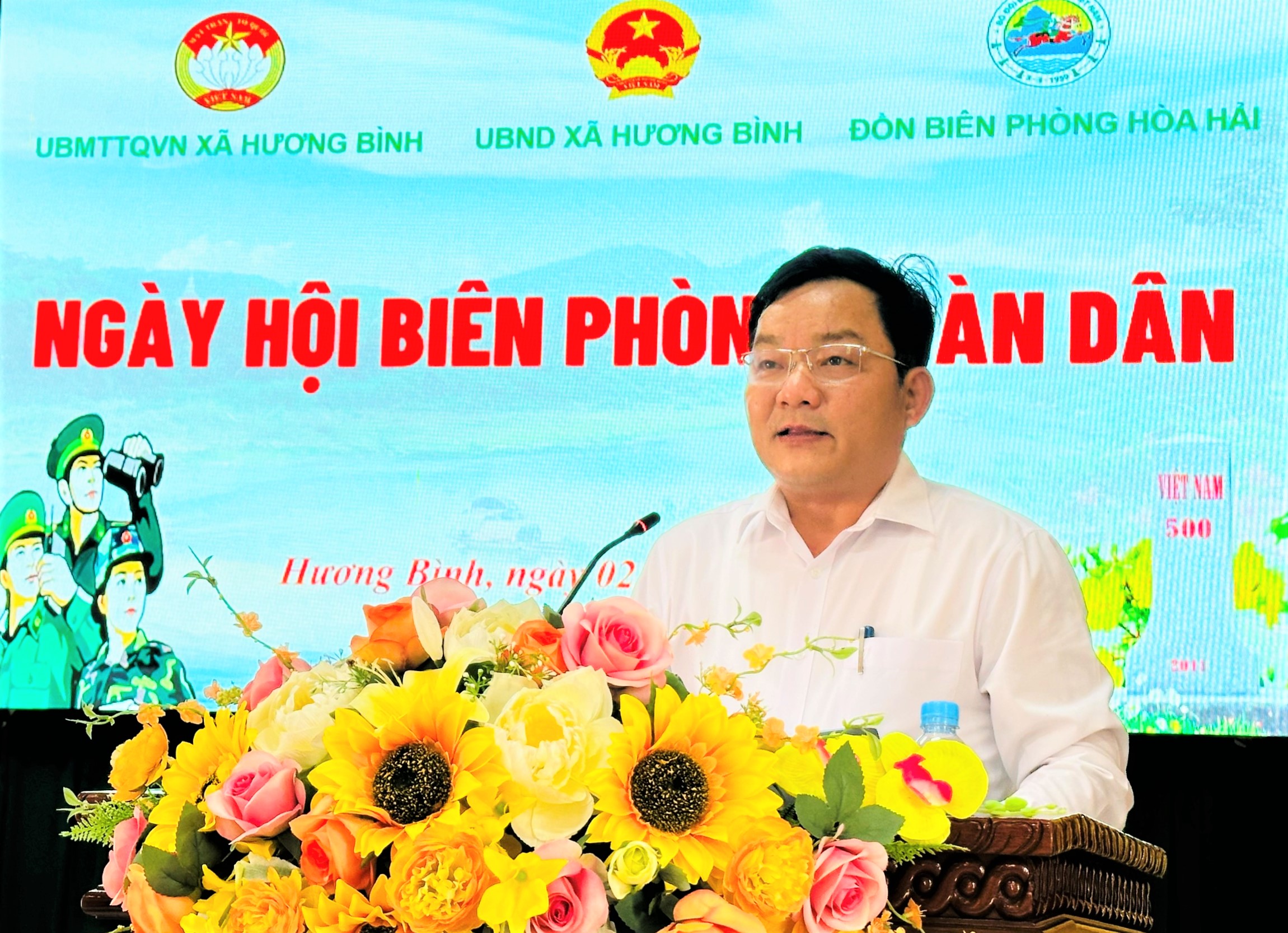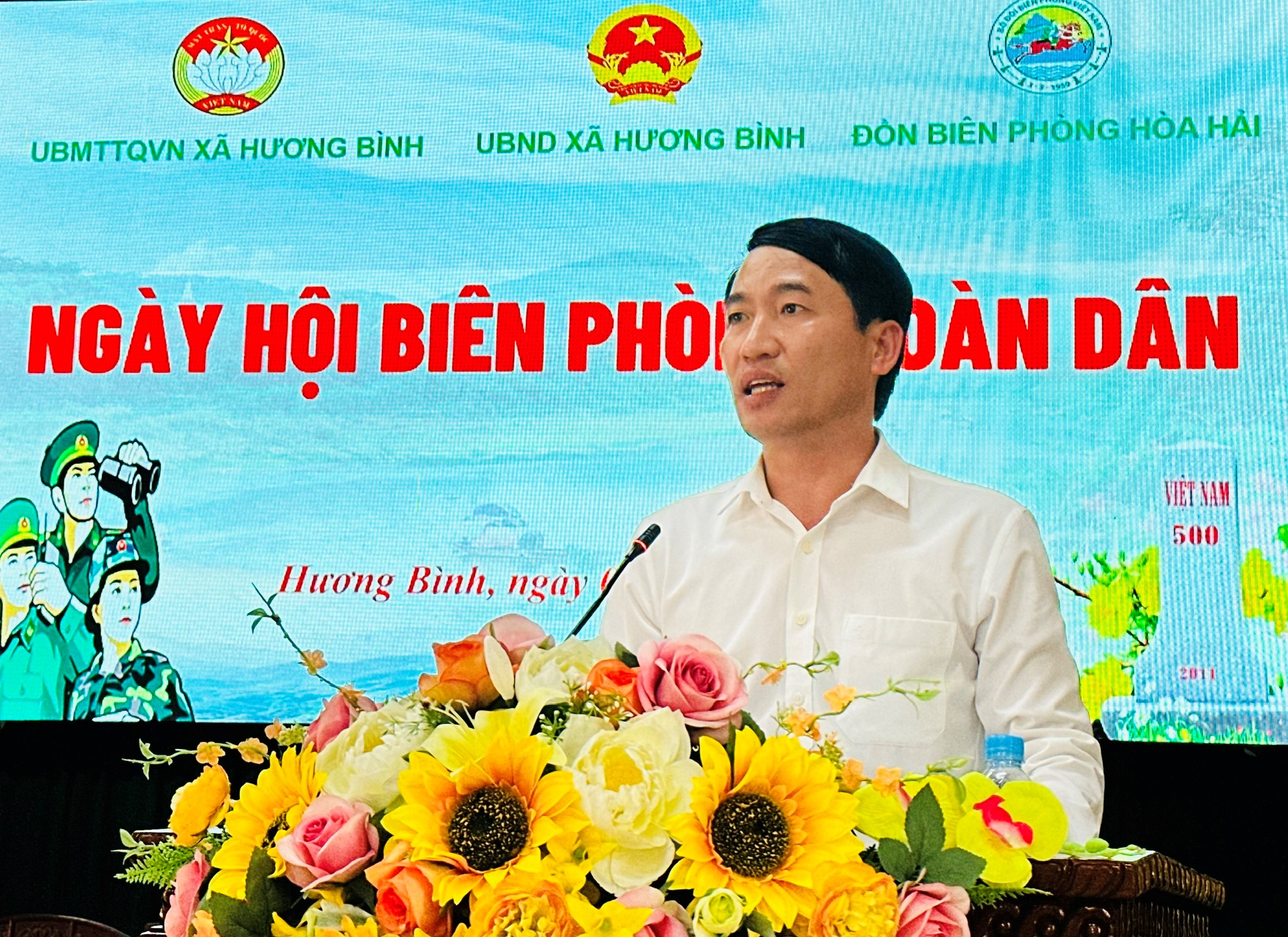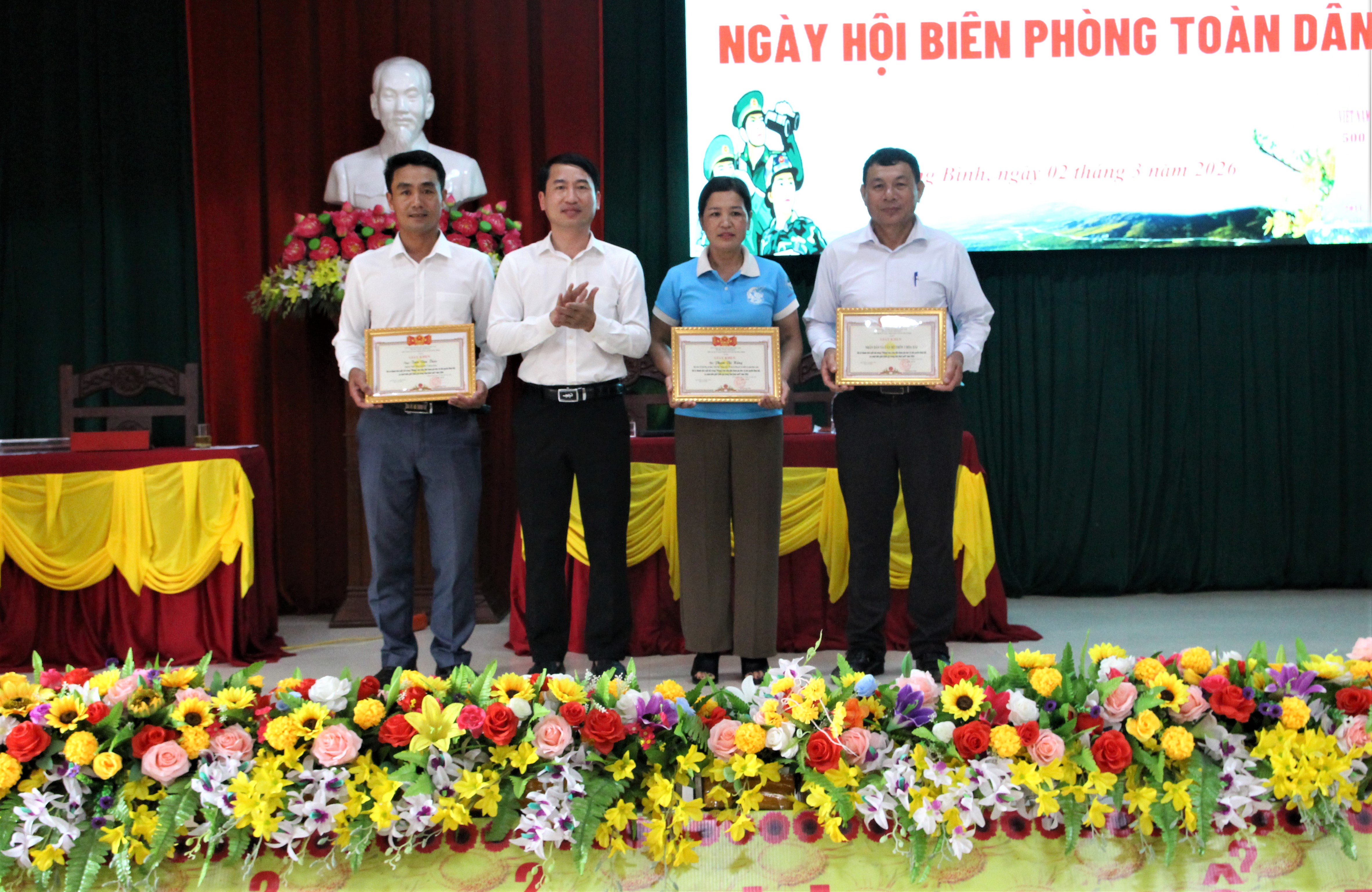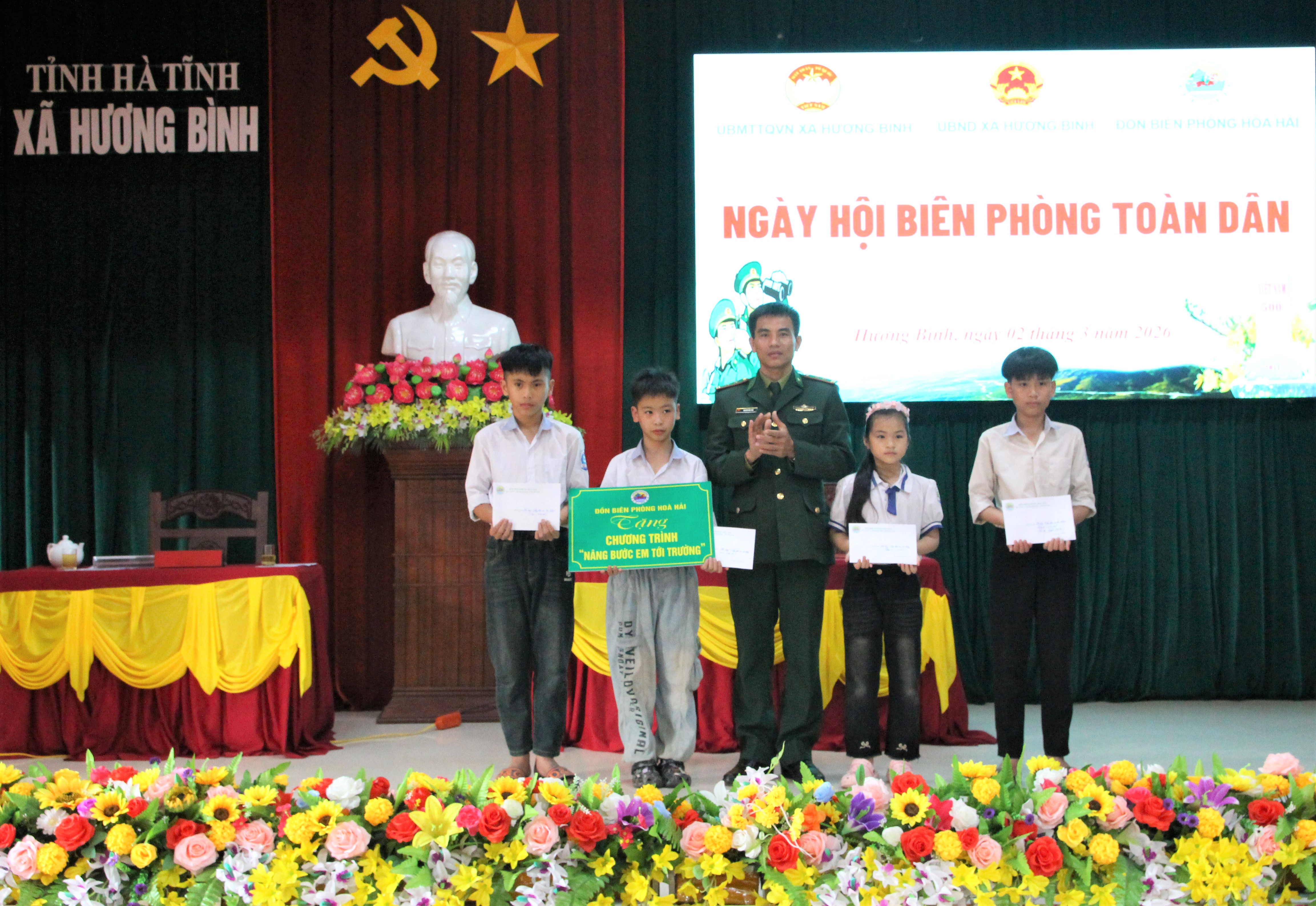 Tại ngày hội, Đảng ủy, HĐND, UBND, Ủy ban MTTQ Việt Nam xã Hương Bình và trường Mầm non Phúc Đồng tặng hoa chúc mừng Đồn Biên phòng Hòa Hải.