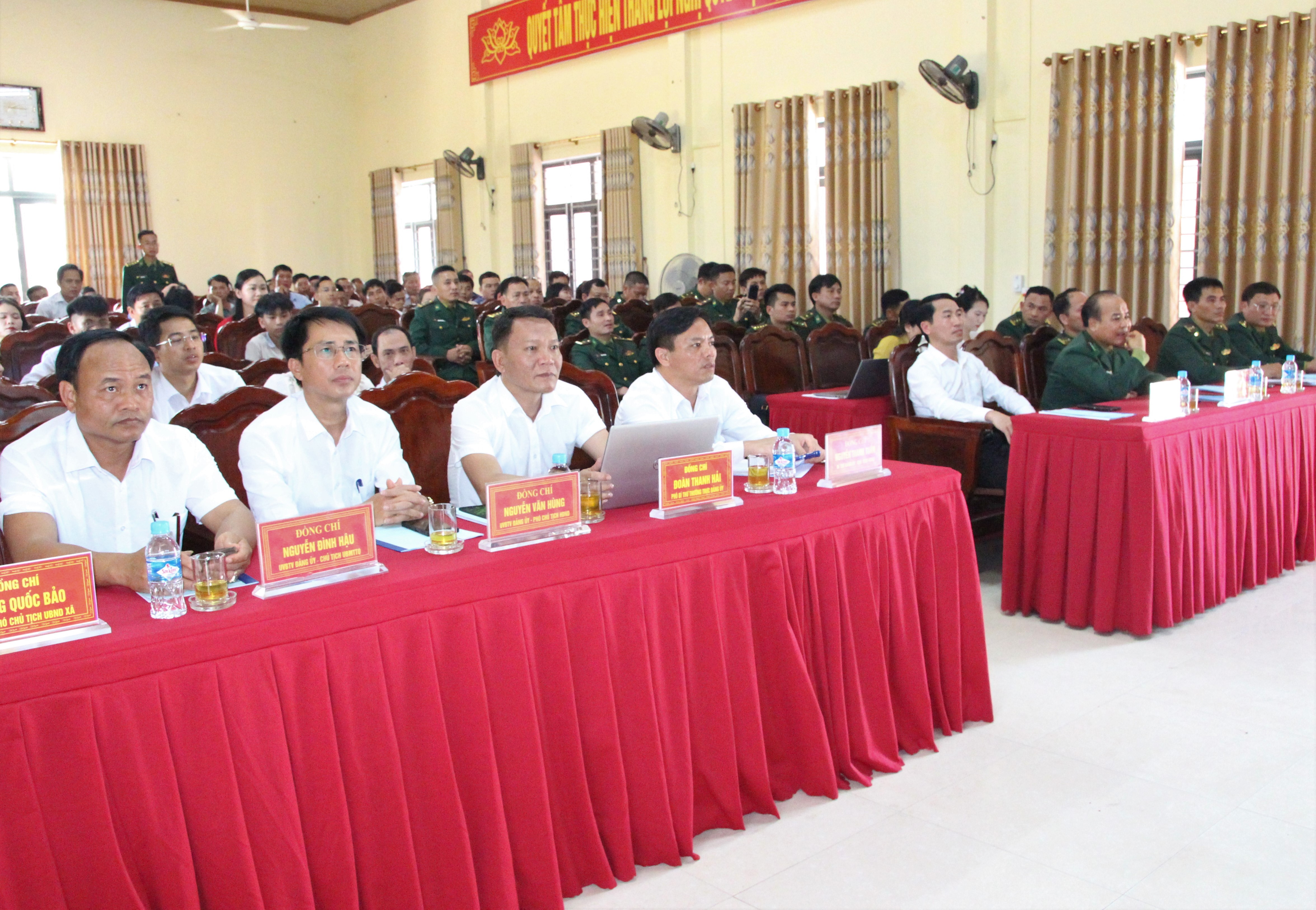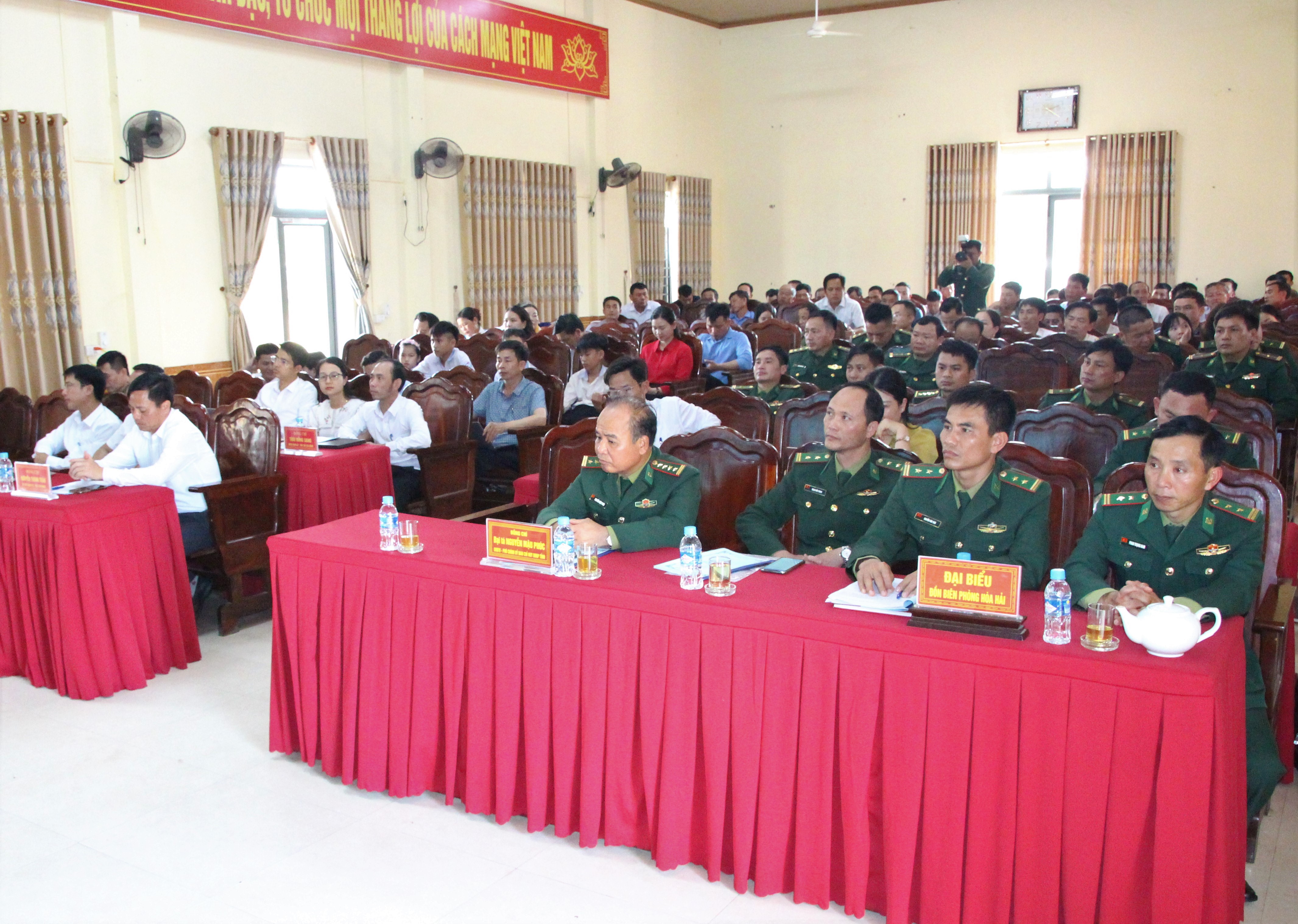 Các đồng chí Lê Quang Vinh – Phó Bí thư Đảng ủy, Chủ tịch UBND xã, Nguyễn Đình Hậu - Ủy viên BTV Đảng ủy, Chủ tịch Ủy ban MTTQ Việt Nam xã và Trung tá Nguyễn Đức Anh – Chính trị viên Đồn Biên phòng Hòa Hải chủ trì.